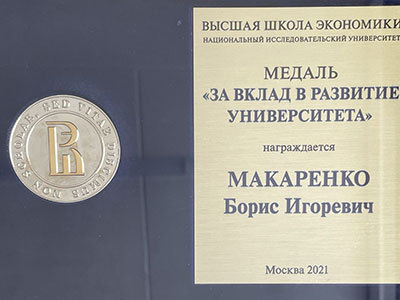 23 мая 2022 года Президент Фонда «Центр политических технологий», заведующий базовой кафедрой Центра политических технологий НИУ ВШЭ Борис Макаренко был награжден Медалью «За вклад в развитие университета». Награду вручили ректор НИУ ВШЭ Никита Анисимов и первый проректор НИУ ВШЭ Вадим Радаев.