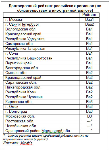 Однако и у других субъектов федерации, как имеющих так и не имеющих рейтингов по международной шкале, на наш взгляд, дела идут не блестяще.